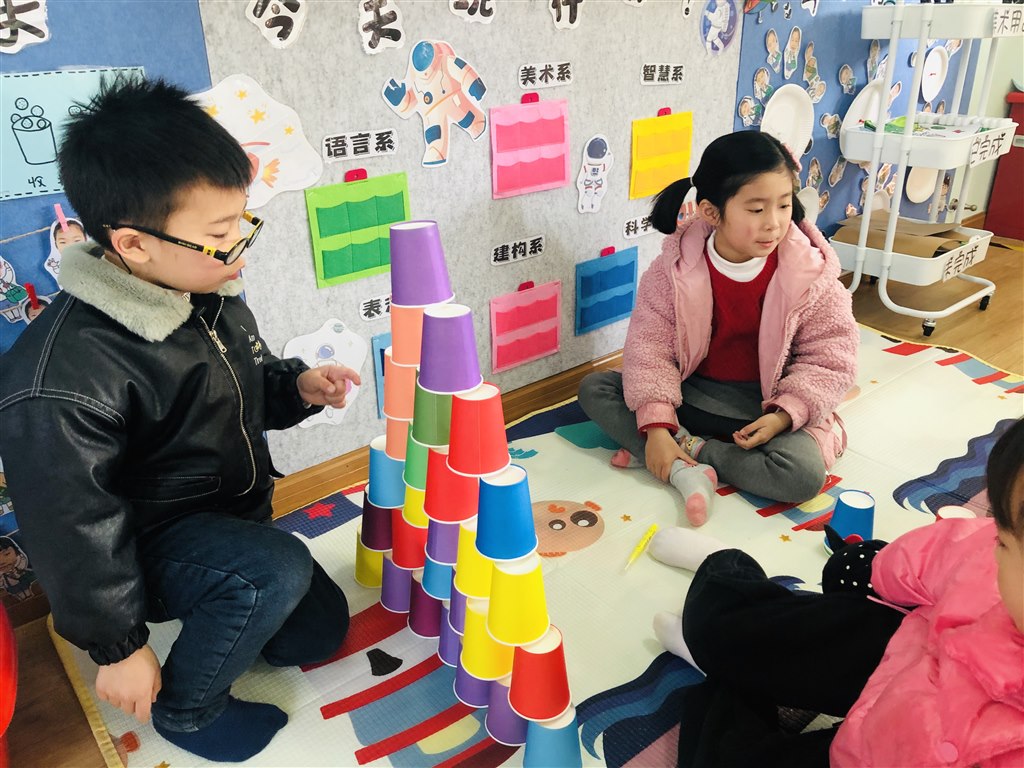 每一次的拼搭都提升了幼儿的想象力,促进了幼儿的智力发展。在开放的建构环境中,孩子们潜移默化地学会珍惜、热爱环保,体现出“游戏中学习、快乐中成长”这一育人理念。