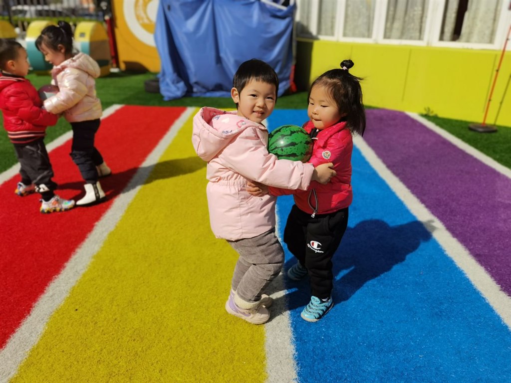 儿童在外奔跑追逐、攀登钻爬跳跃,使身体基本活动能力得到锻炼,可以提高身体活动的协调性、灵敏性、柔嫩性等,户外游戏活动对于儿童身心健康发展具有重要意义。2021年3月10日开展了体育游戏《螃蟹夹球》发展幼儿四肢协调能力和培养幼儿团结协作精神。